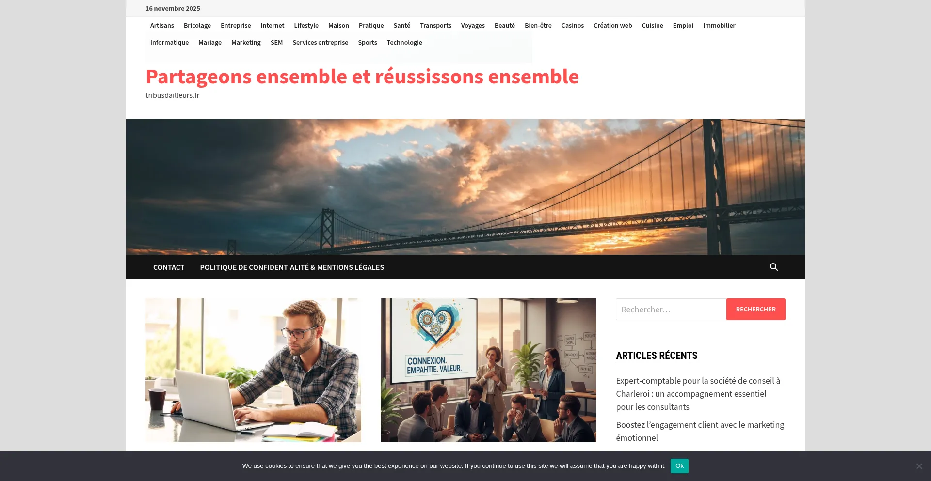 O site implementa mecanismos de consentimento de cookies em conformidade com regulamentações de privacidade como GDPR ou CCPA. Isso demonstra que tribusdailleurs.fr adere a padrões de proteção de dados e fornece aos usuários controle sobre práticas de coleta de dados pessoais.