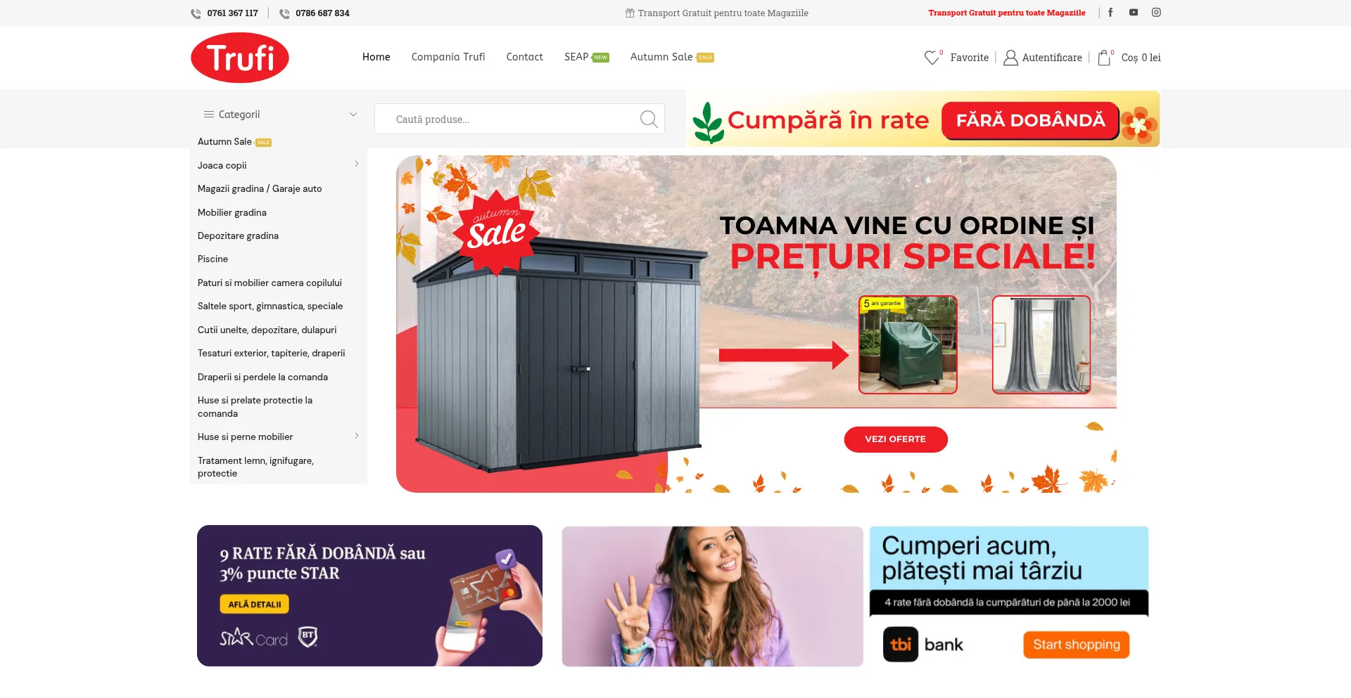 Trufi.ro ofera o varietate mare de produse atat pentru casa si gradina cat si articole de copii, locuri de joaca, accesorii.