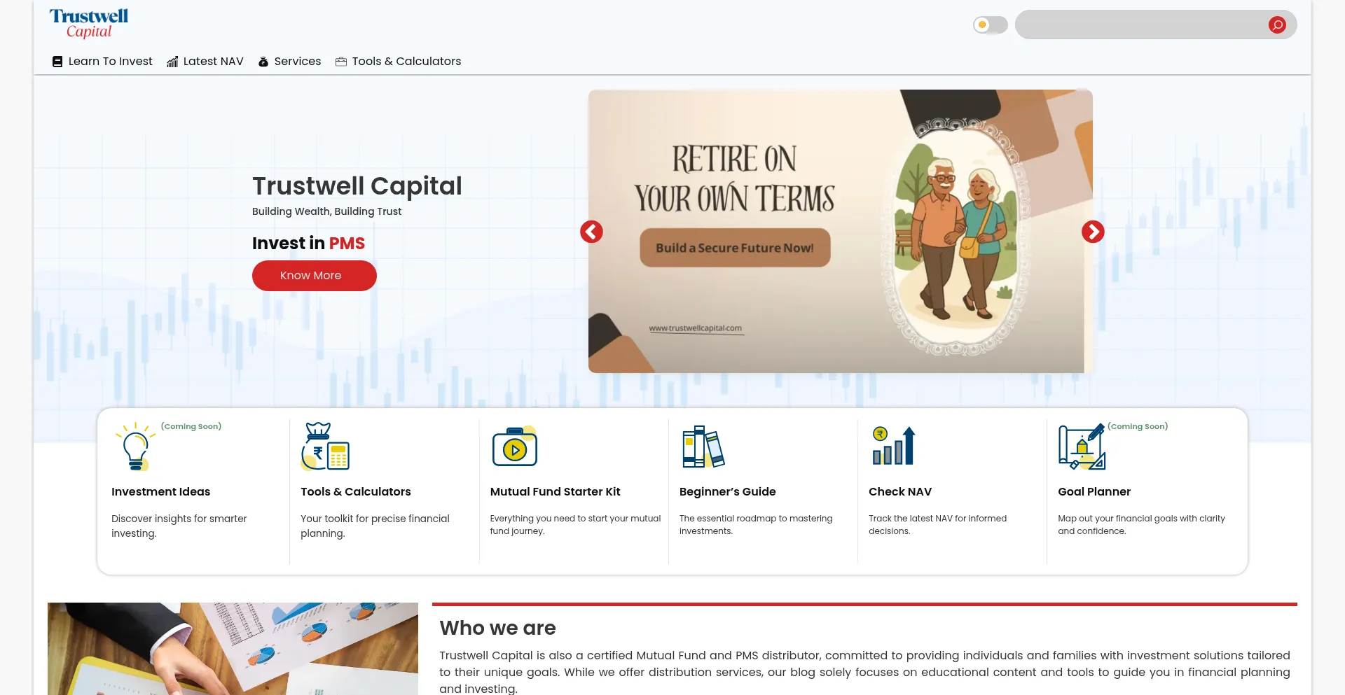 Explore Trustwell Finsol, your trusted source for investment guidance, financial planning, and easy-to-use financial calculators. Learn about mutual funds, PMS, and effective we...