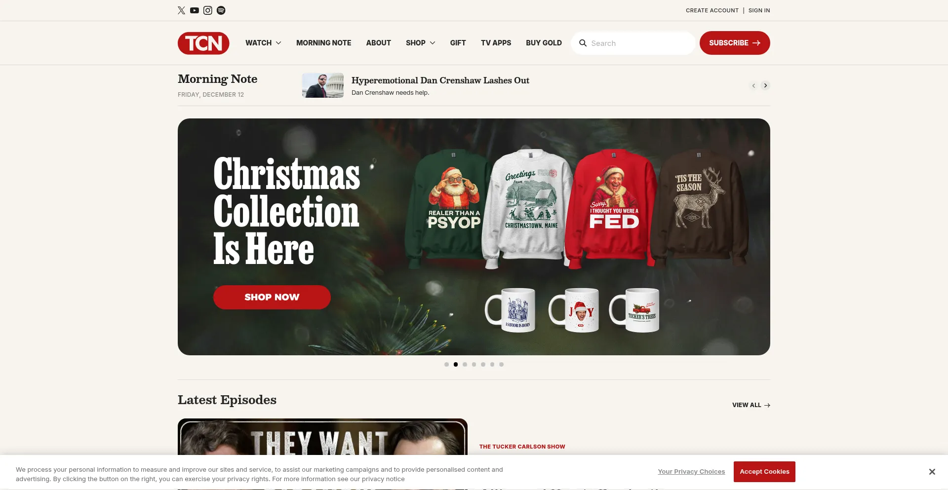 O site implementa mecanismos de consentimento de cookies em conformidade com regulamentações de privacidade como GDPR ou CCPA. Isso demonstra que tuckercarlson.com adere a padrões de proteção de dados e fornece aos usuários controle sobre práticas de coleta de dados pessoais.