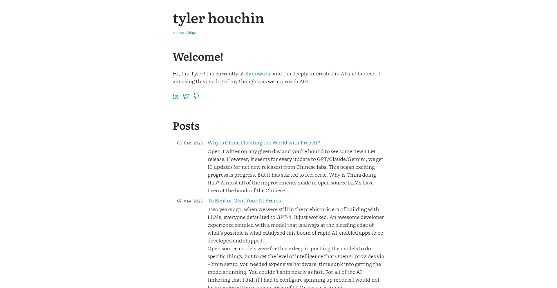 www.linkedin.com www.loom.com cdn.jsdelivr.net www.economist.com twitter.com www.science.org tylerhouchin.com gohugo.io www.kamiwaza.ai ai.meta.com +4 mais