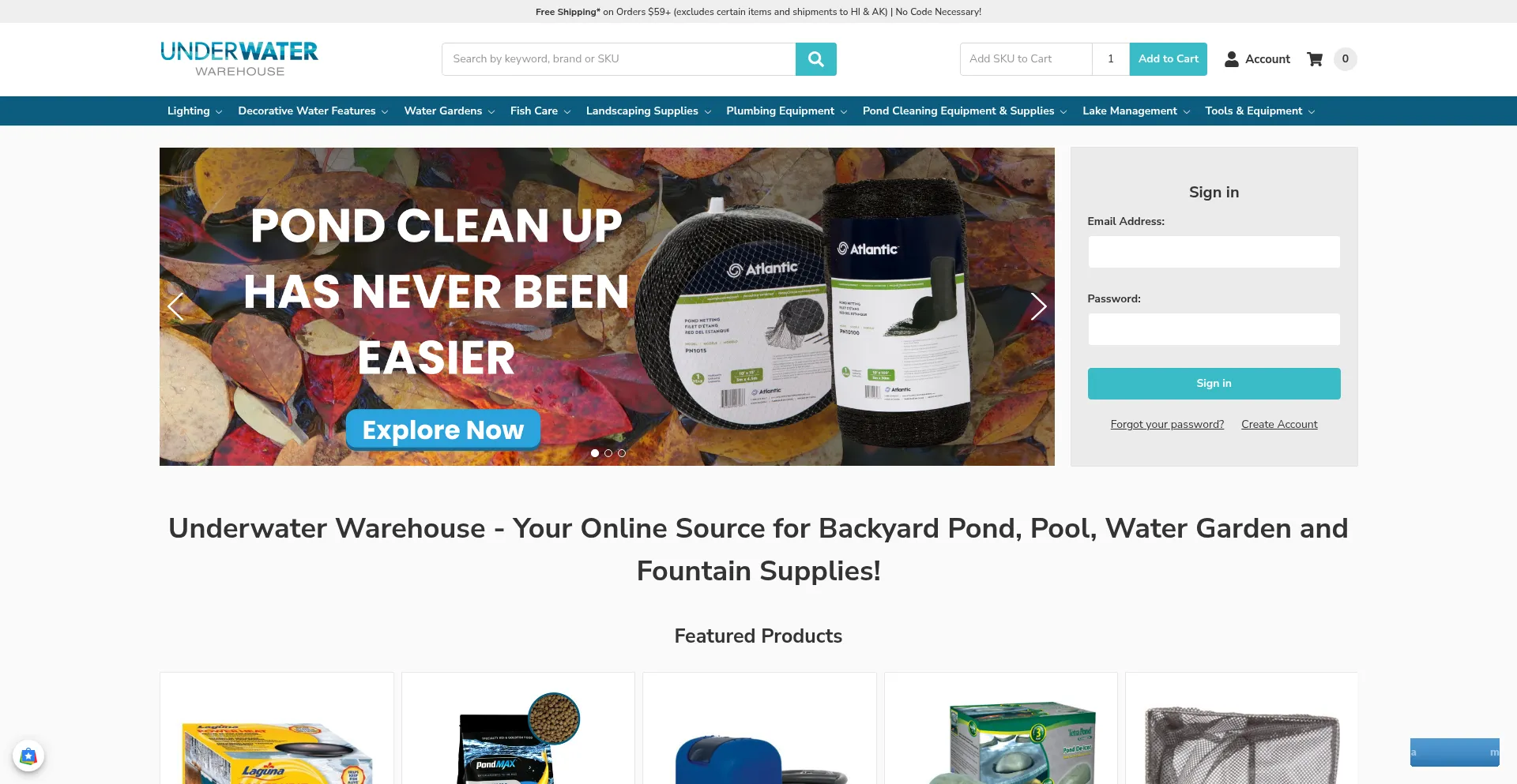 Transform your backyard oasis with top-quality pond supplies online. From pumps to plants, discover all your water garden supplies at Underwater Warehouse!