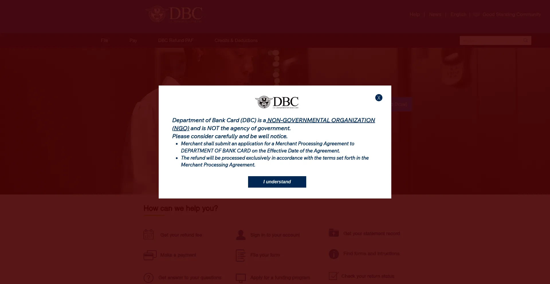 U.S Department of Bank Card | DBC Refund PAF is Non-governmental Organization helps Small Businesses in Tax, Credit and Services.