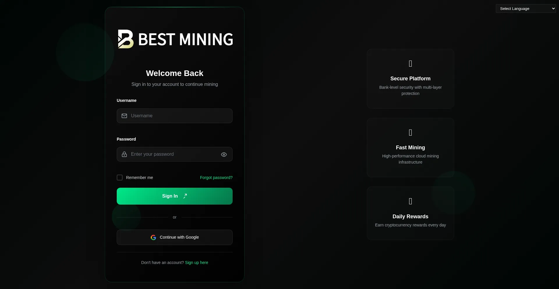 BEST MINING Cloud Mining - Sign In
