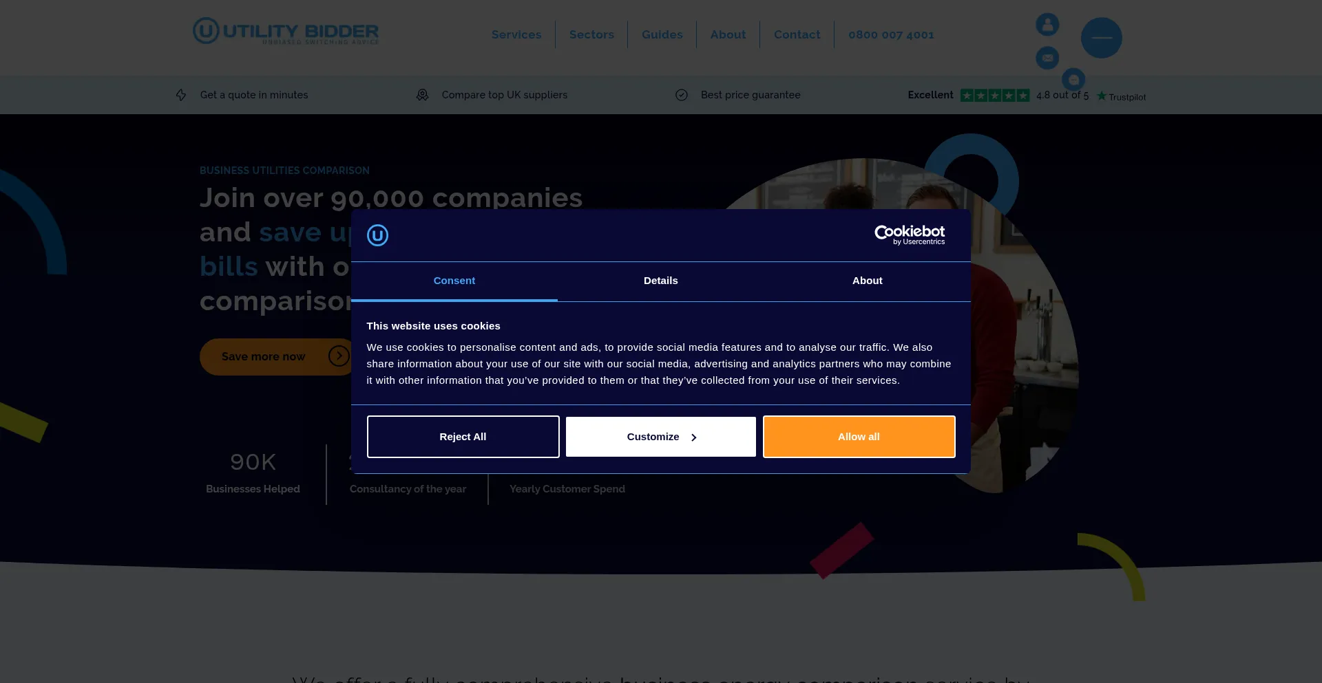 O site implementa mecanismos de consentimento de cookies em conformidade com regulamentações de privacidade como GDPR ou CCPA. Isso demonstra que utilitybidder.co.uk adere a padrões de proteção de dados e fornece aos usuários controle sobre práticas de coleta de dados pessoais.
