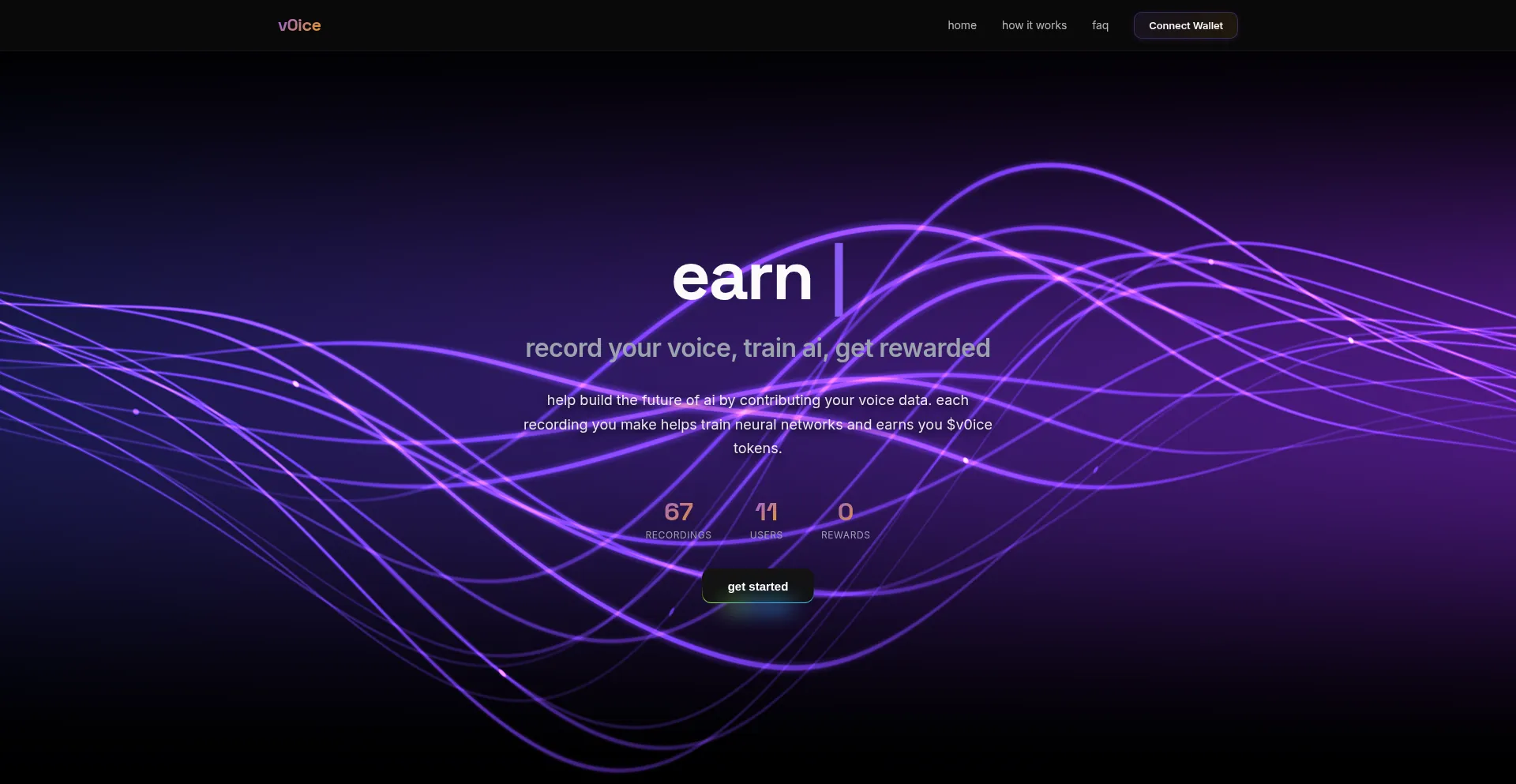 Record your voice and earn $V0ICE tokens. Help train AI neural networks with voice data.
