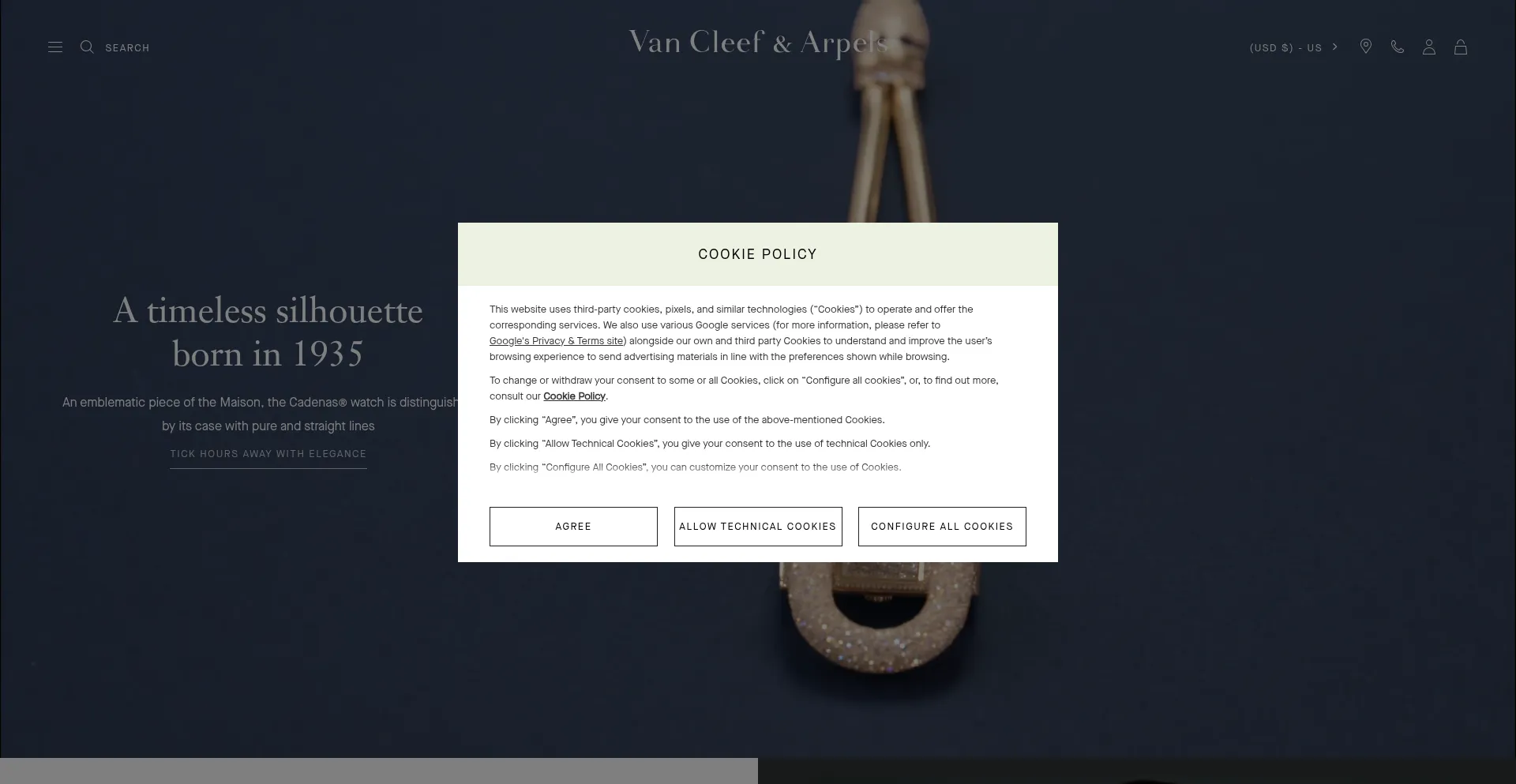 O site implementa mecanismos de consentimento de cookies em conformidade com regulamentações de privacidade como GDPR ou CCPA. Isso demonstra que vancleefarpels.com adere a padrões de proteção de dados e fornece aos usuários controle sobre práticas de coleta de dados pessoais.