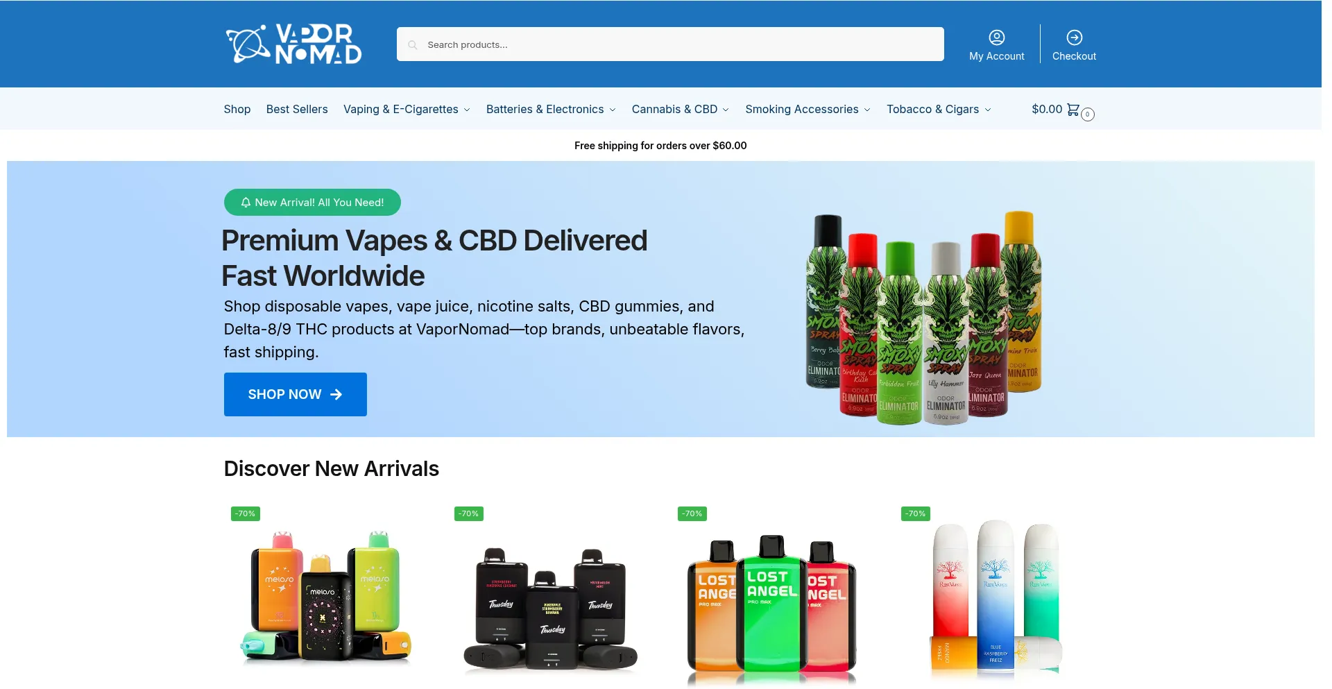 Shop premium disposable vapes, vape juice, nicotine salts, CBD gummies, and Delta-8/9 THC products at VaporNomad. Fast shipping, top brands—buy today!