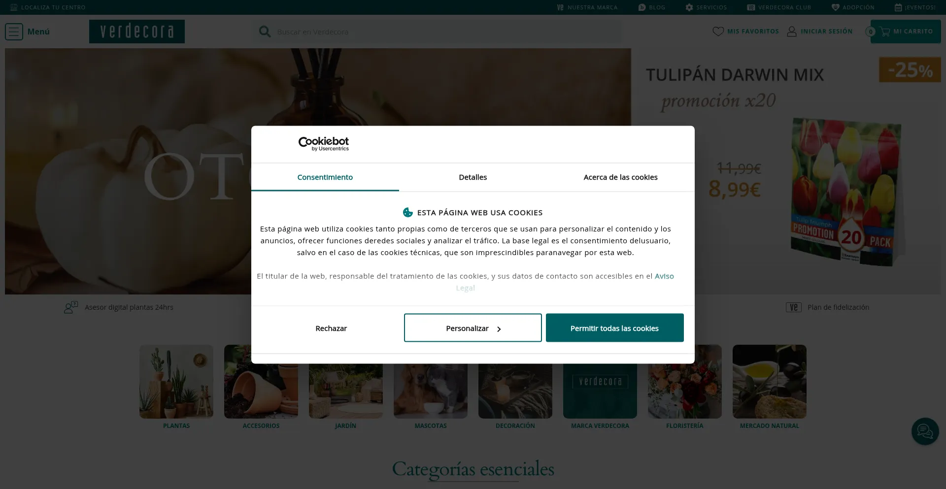 O site implementa mecanismos de consentimento de cookies em conformidade com regulamentações de privacidade como GDPR ou CCPA. Isso demonstra que verdecora.es adere a padrões de proteção de dados e fornece aos usuários controle sobre práticas de coleta de dados pessoais.