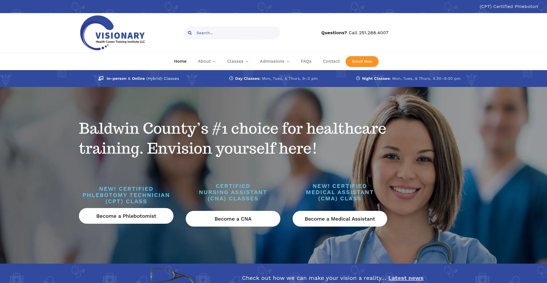 Baldwin County's #1 choice for healthcare training. Envision yourself here! NEW! Certified Phlebotomy Technician (CPT) Class Become a Phlebotomist Certified Nursing Assist...