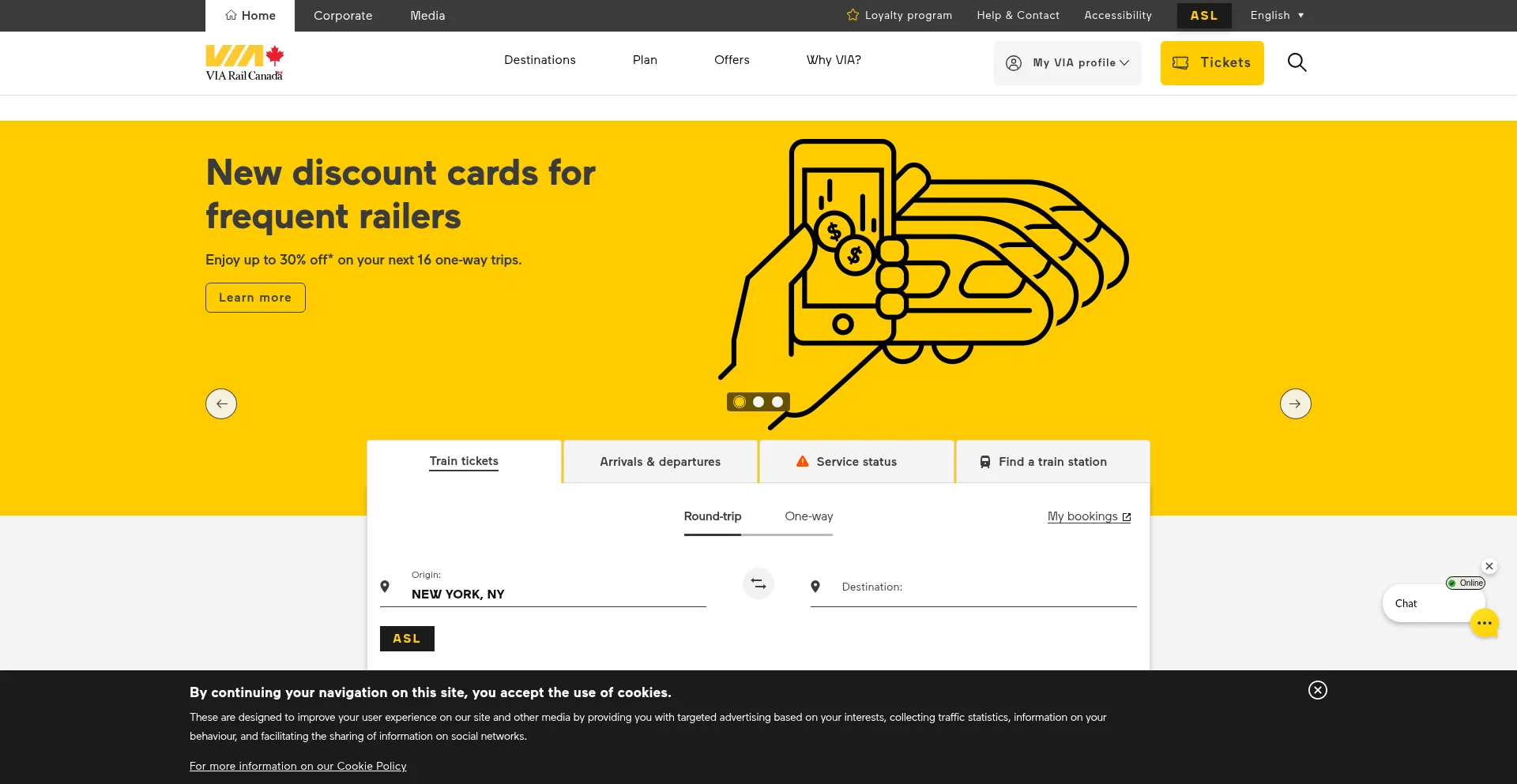 O site implementa mecanismos de consentimento de cookies em conformidade com regulamentações de privacidade como GDPR ou CCPA. Isso demonstra que viarail.ca adere a padrões de proteção de dados e fornece aos usuários controle sobre práticas de coleta de dados pessoais.