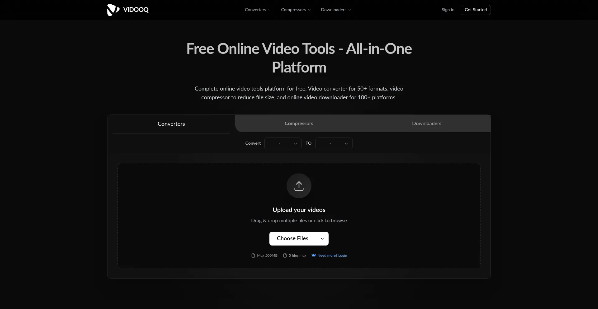 Free online video tools for all your video needs. Convert 50+ formats, compress videos, download from 100+ platforms.