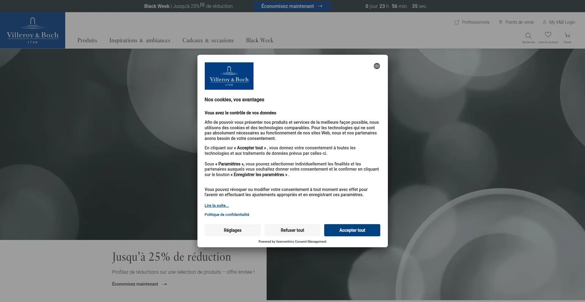 O site implementa mecanismos de consentimento de cookies em conformidade com regulamentações de privacidade como GDPR ou CCPA. Isso demonstra que villeroy-boch.be adere a padrões de proteção de dados e fornece aos usuários controle sobre práticas de coleta de dados pessoais.