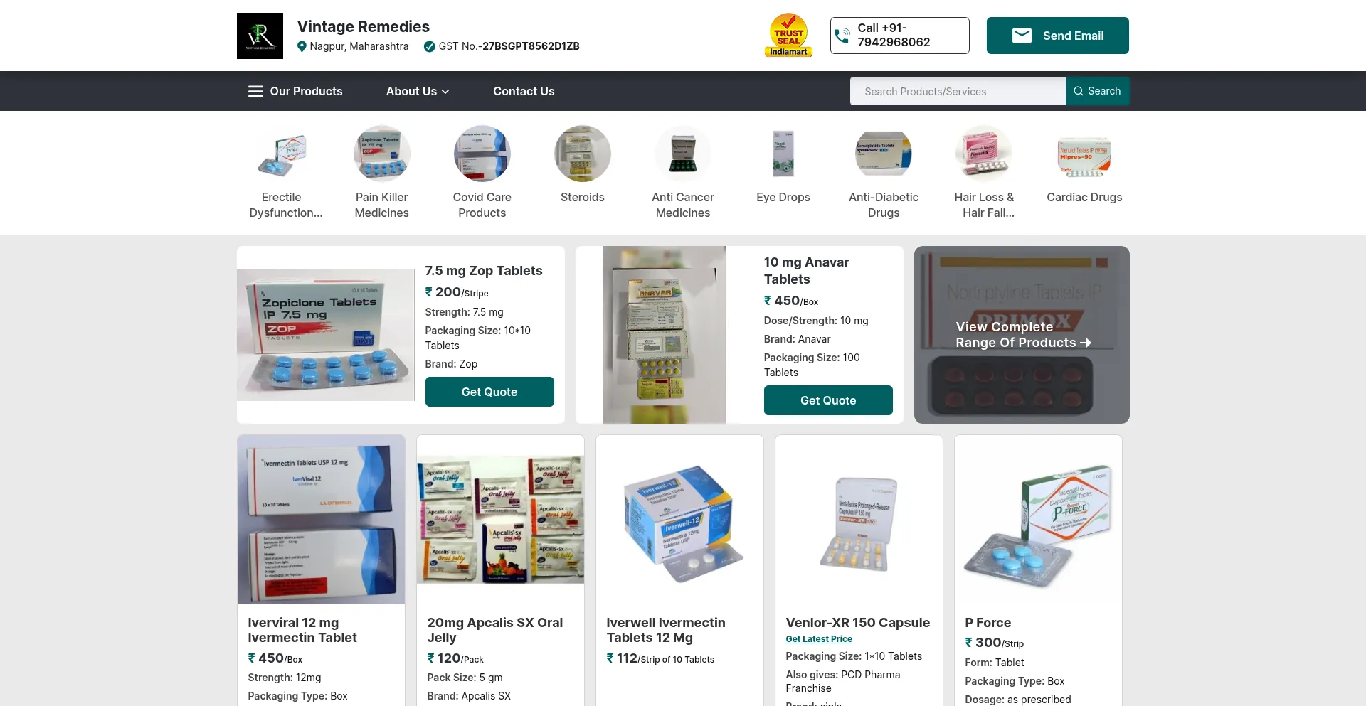Trader - Wholesaler / Distributor of Erectile Dysfunction Medicine, Pain Killer Medicines & Covid Care Products offered by Vintage Remedies from Nagpur, Maharashtra, India