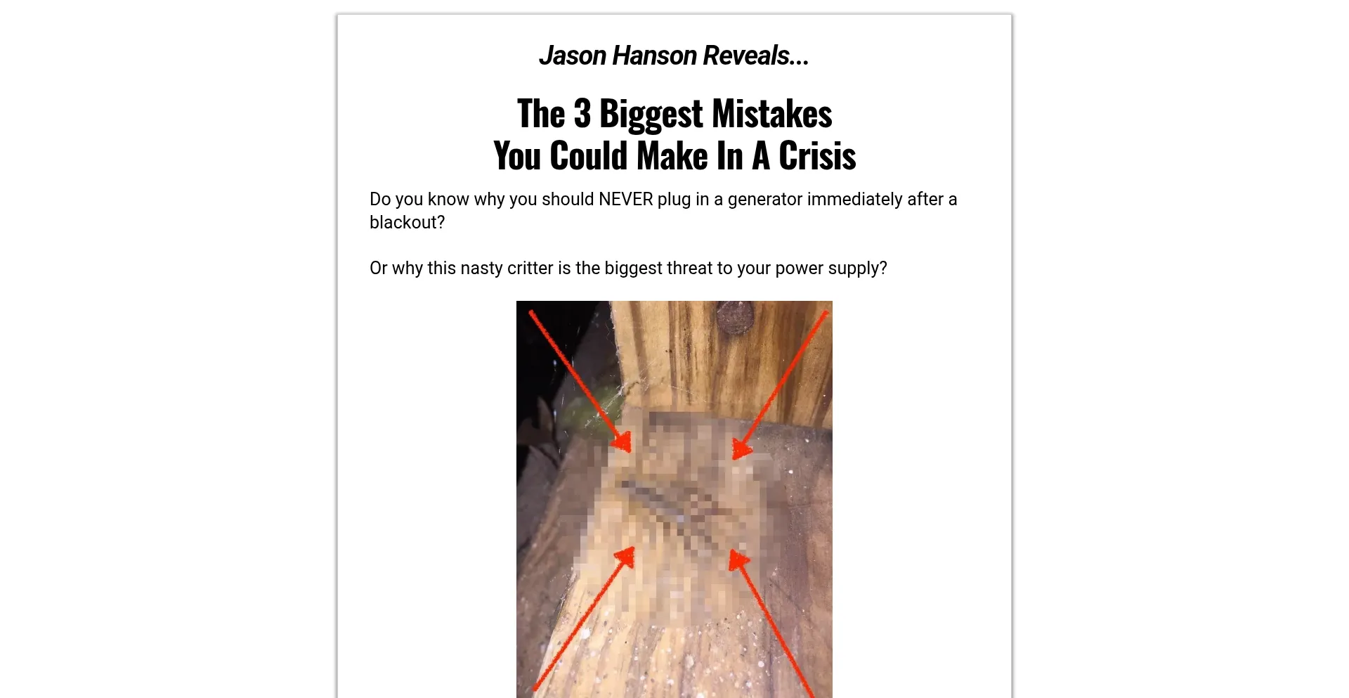 Do you know why you should NEVER plug in a generator immediately after a blackout?Or why this nasty critter is the biggest threat to your power supply?