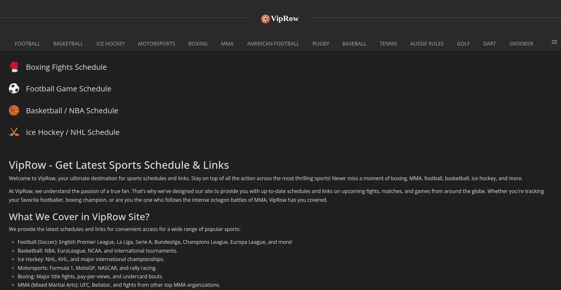 VipRow Latest Sports Schedule & Links