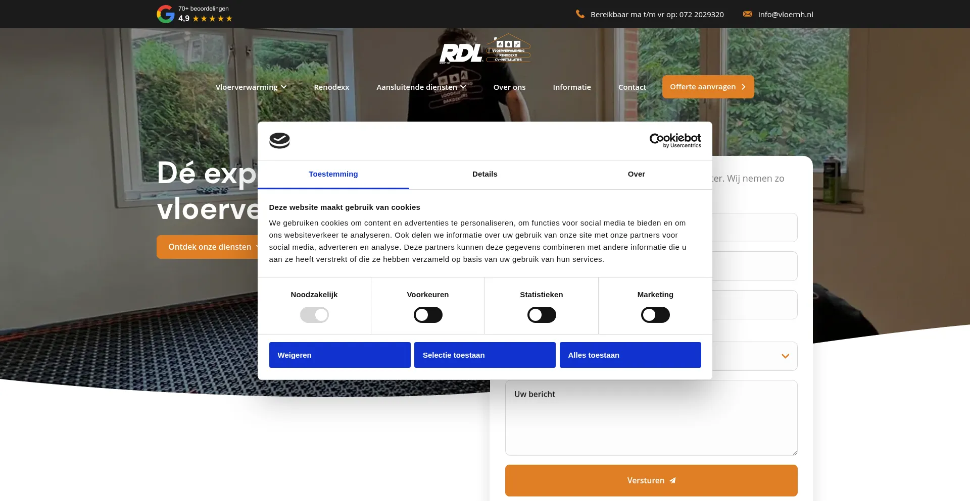 O site implementa mecanismos de consentimento de cookies em conformidade com regulamentações de privacidade como GDPR ou CCPA. Isso demonstra que vloerverwarmingnoordholland.nl adere a padrões de proteção de dados e fornece aos usuários controle sobre práticas de coleta de dados pessoais.