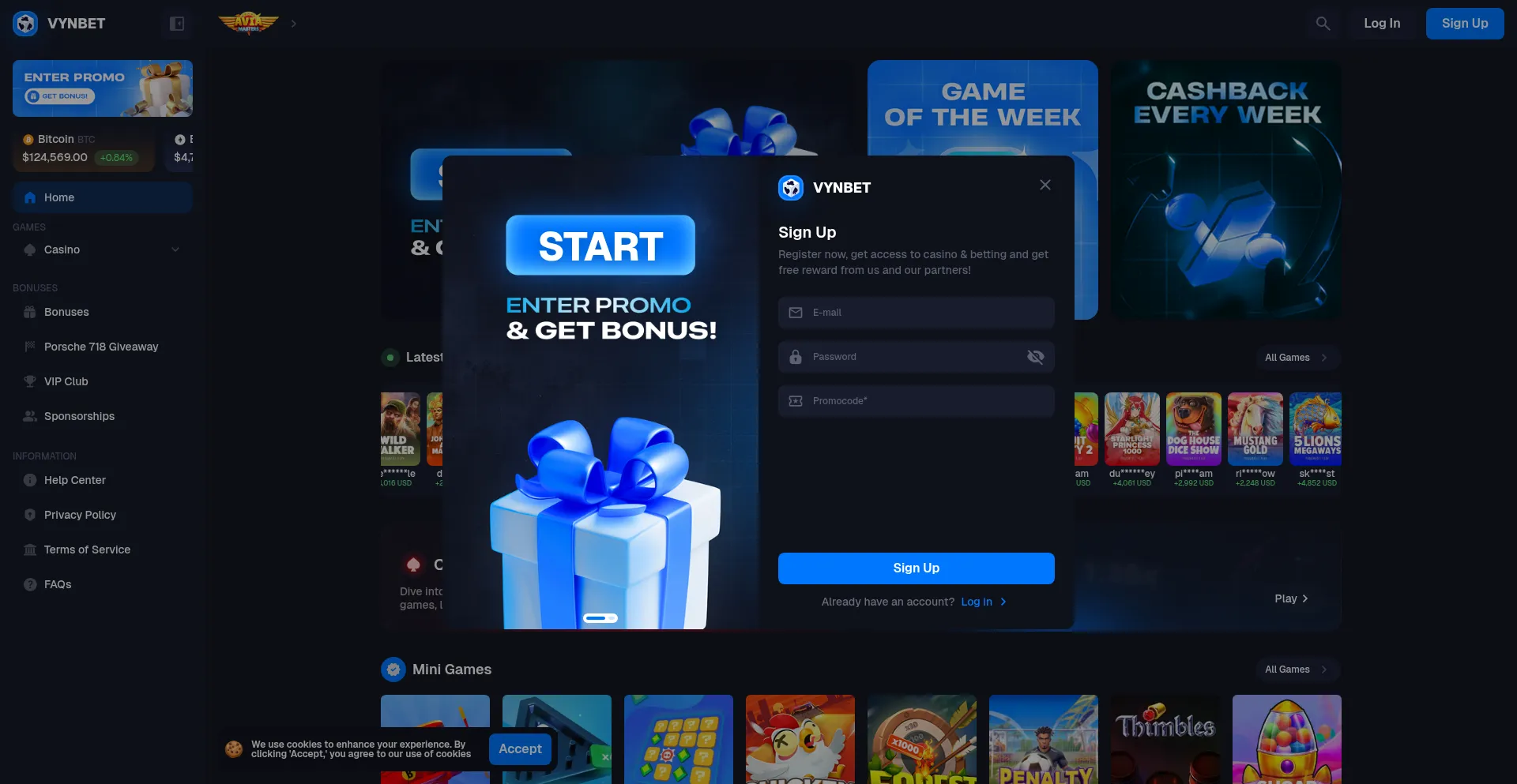O site implementa mecanismos de consentimento de cookies em conformidade com regulamentações de privacidade como GDPR ou CCPA. Isso demonstra que vynbet.com adere a padrões de proteção de dados e fornece aos usuários controle sobre práticas de coleta de dados pessoais.