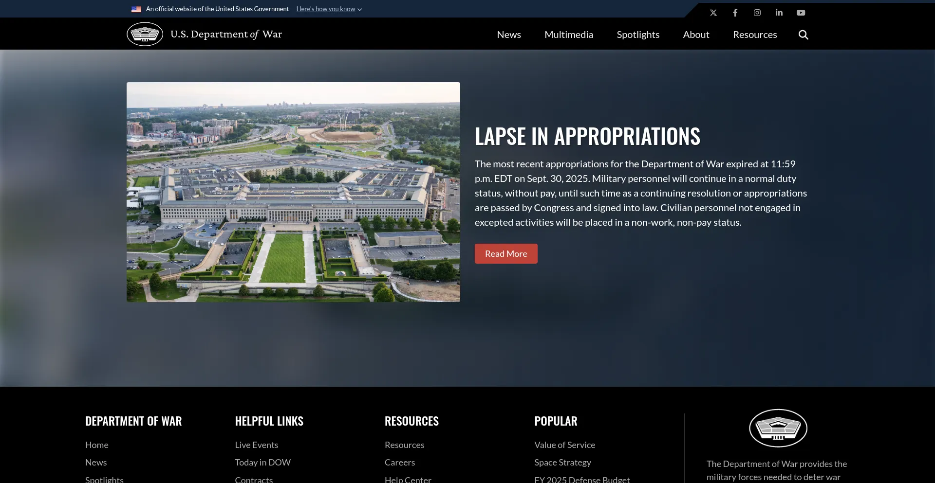 A presença de links de redes sociais no site indica que war.gov mantém contas oficiais em redes sociais, o que é um sinal positivo de credibilidade e engajamento.