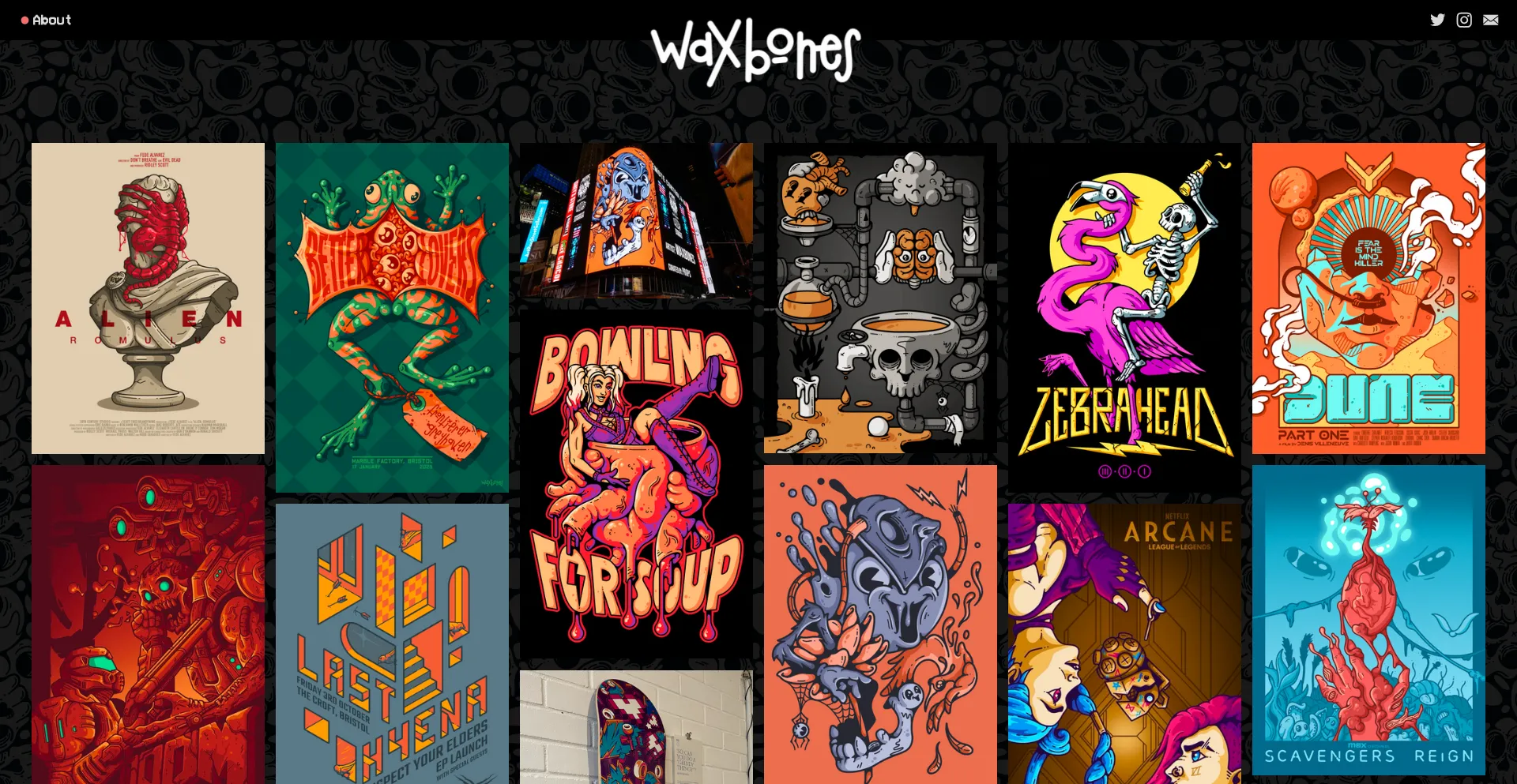 The art of Waxbones, expelling creative juices where the whimsical meets the macabre.