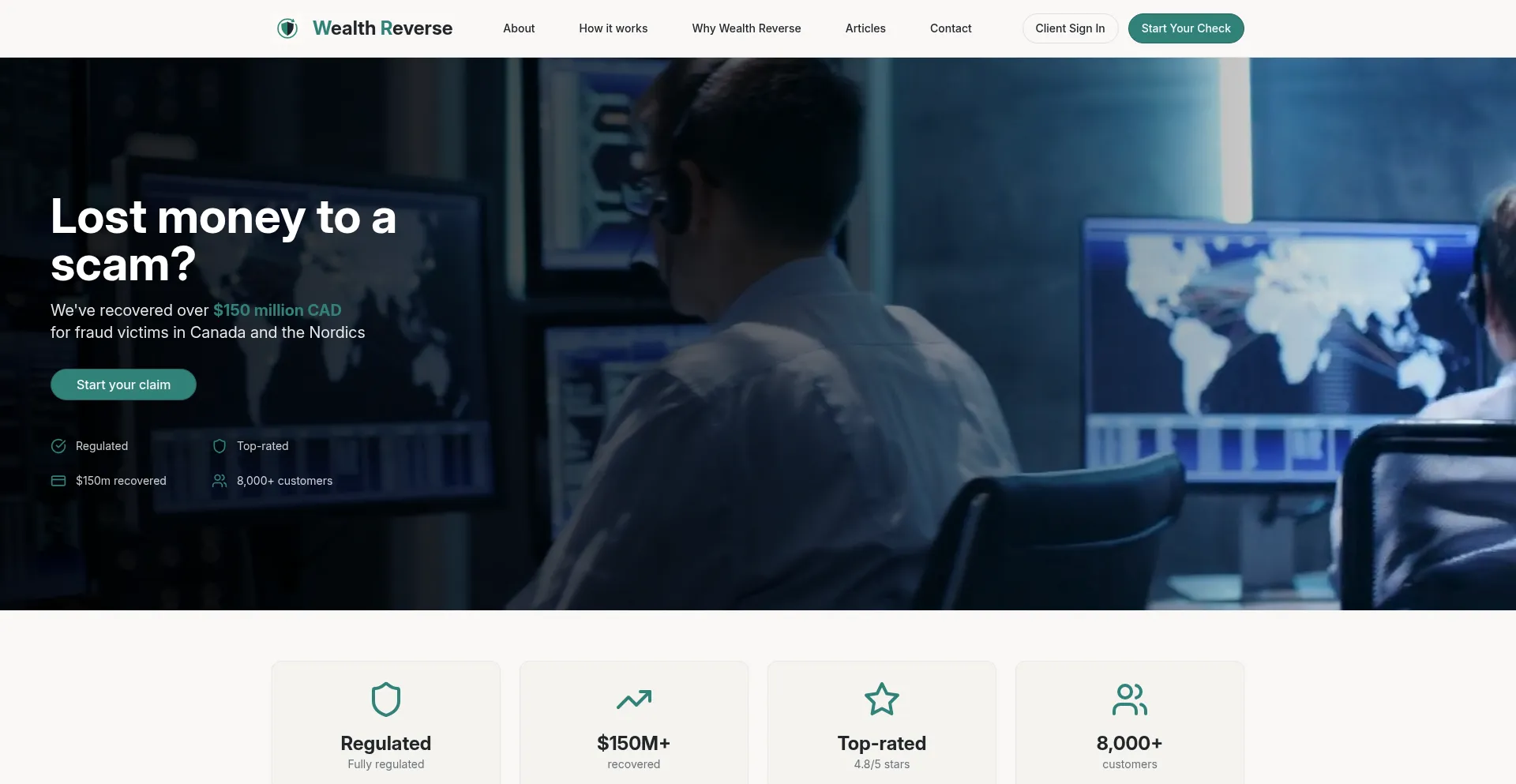 Wealth Reverse helps fraud victims in Canada and Nordic countries recover their money. We've recovered over $150 million CAD. Rated 4.8/5 on Trustpilot with 8,000+ satisfied cus...