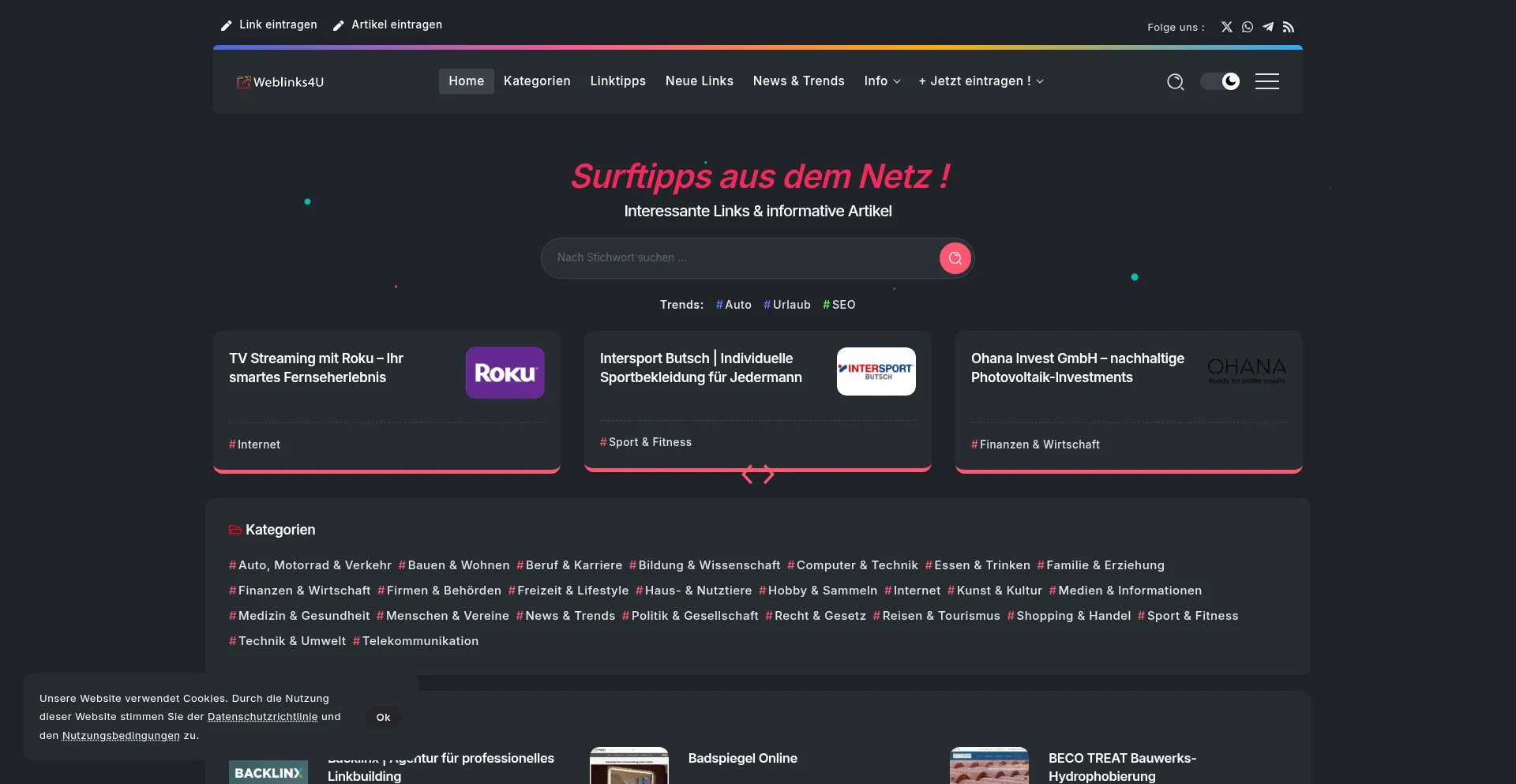Webkatalog Weblinks4U | Surftipps aus dem Netz !