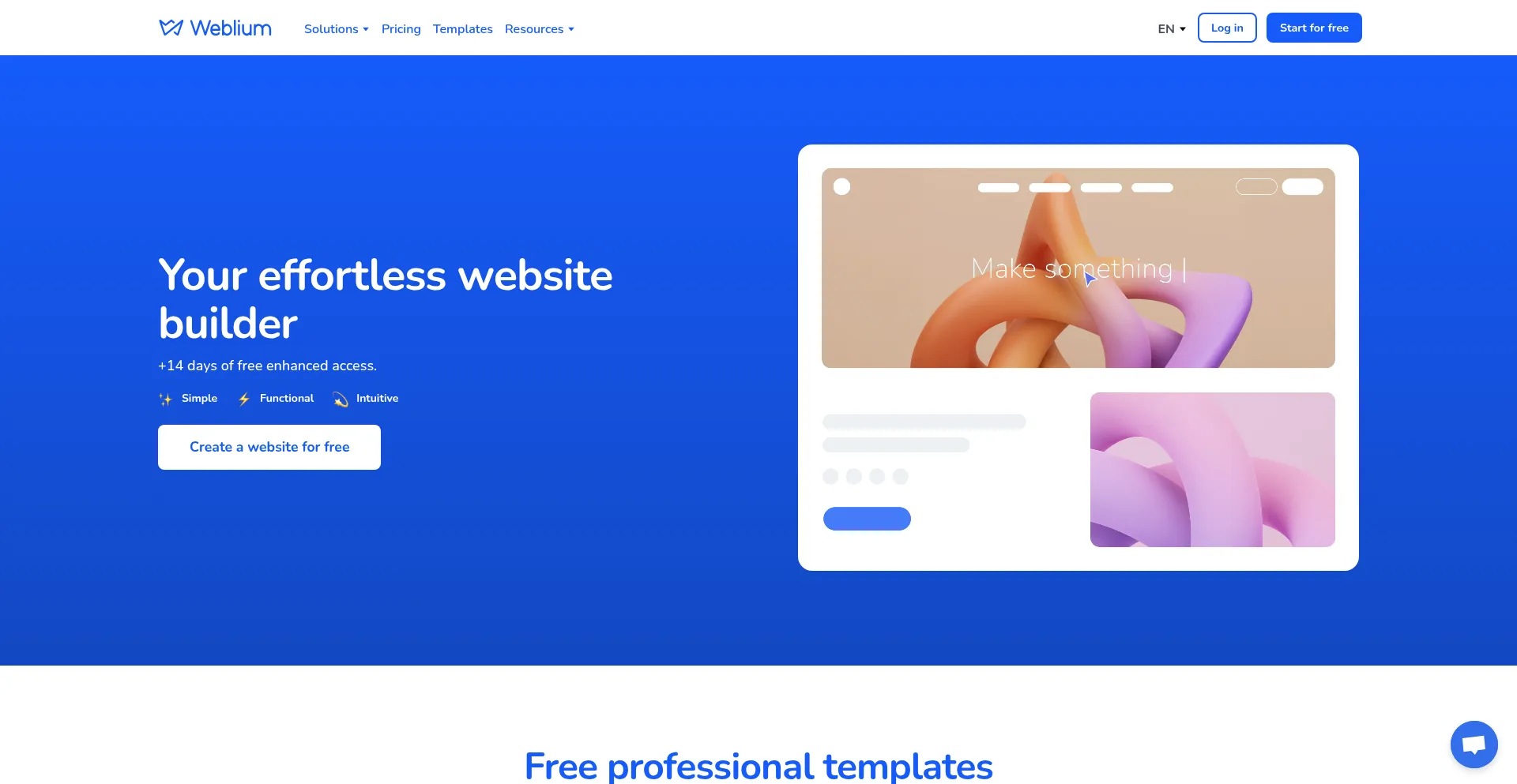 Build your dream website effortlessly with Weblium. Enjoy an intuitive site builder, professional templates, and advanced features—all in one place. Try it for free today!