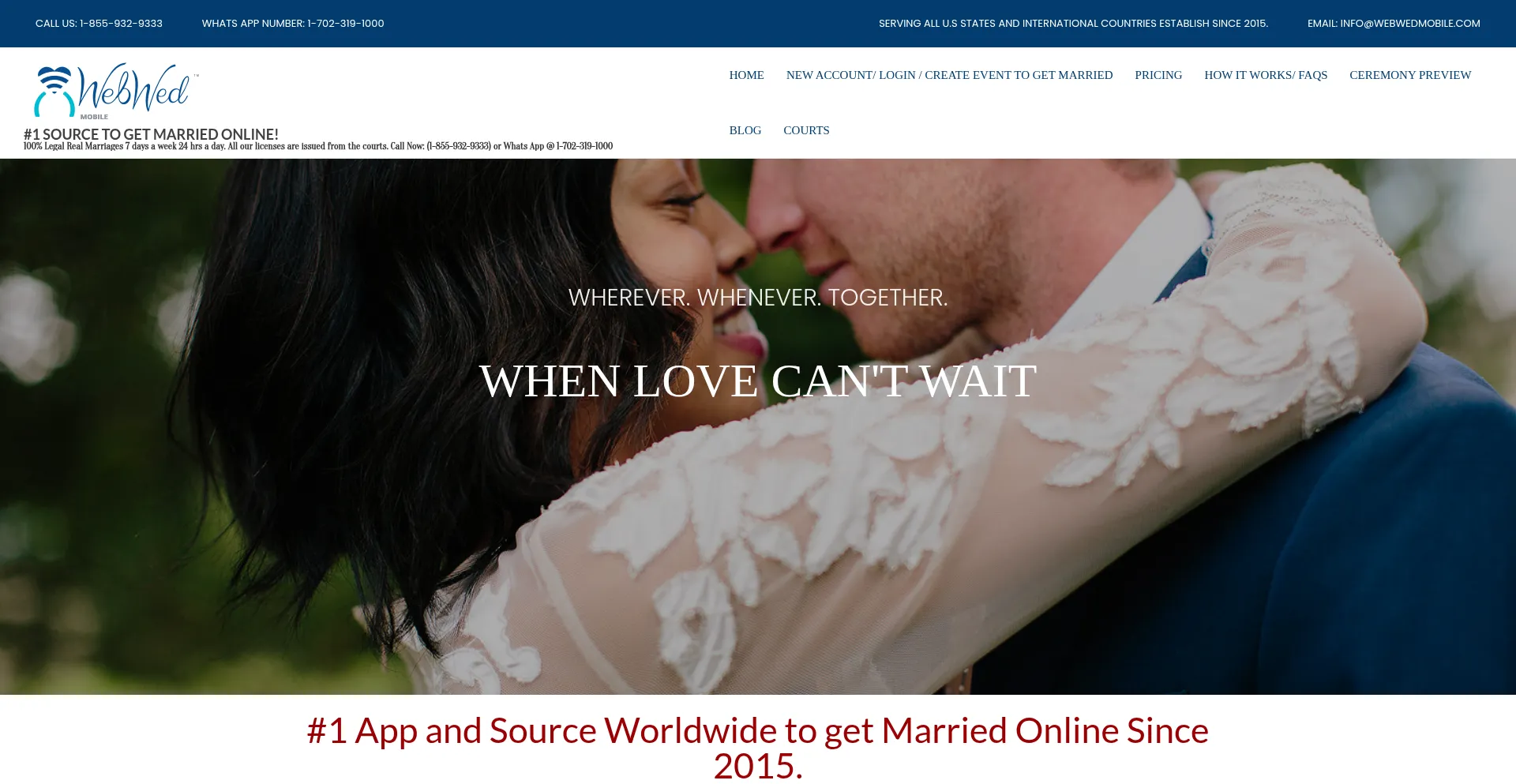 #1 SOURCE TO GET MARRIED ONLINE! – 100% Legal Real Marriages 7 days a week 24 hrs a day. All our licenses are issued from the courts. Call Now: (1-855-932-9333) or Whats App @ 1-702-319-1000
