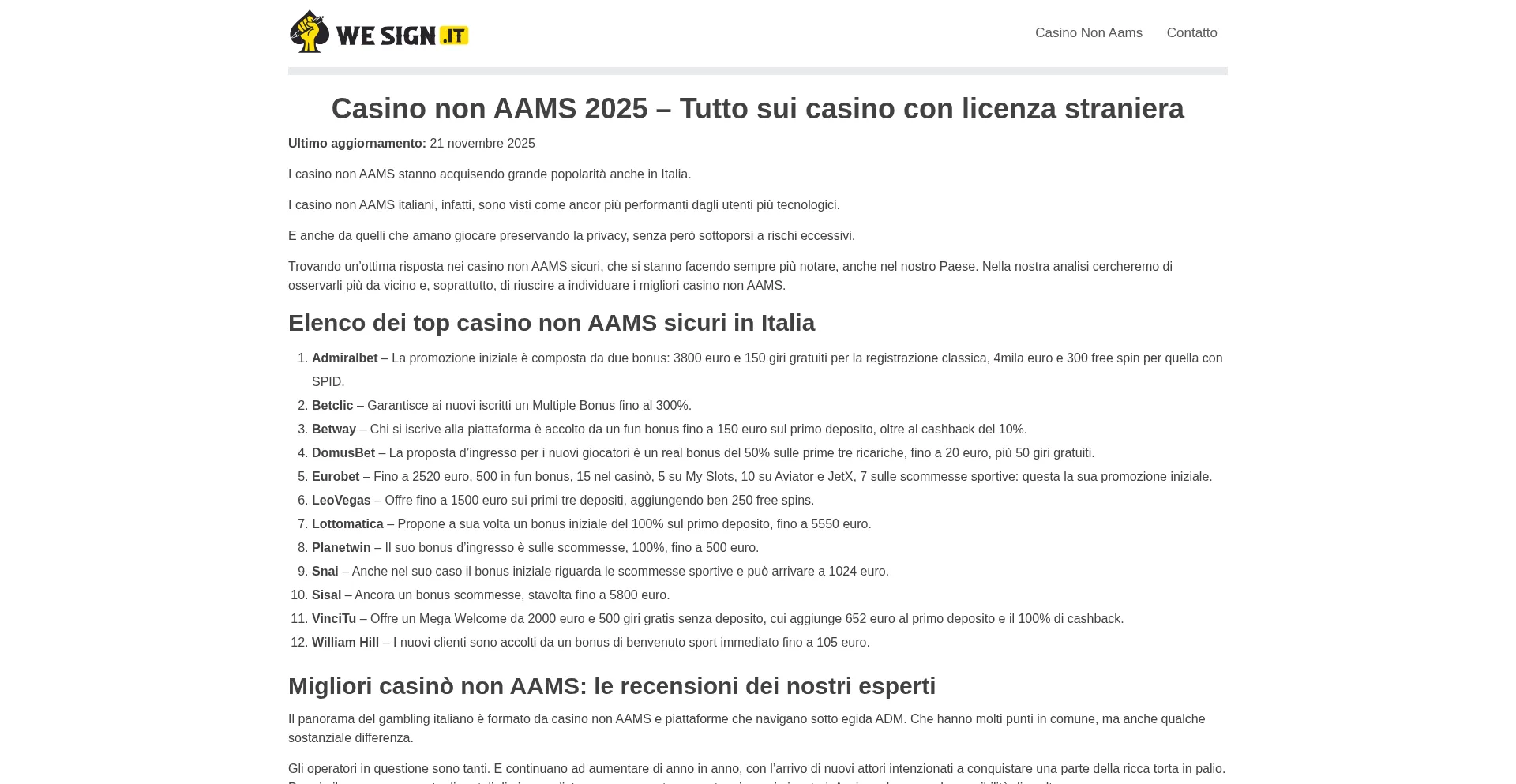 Casino non AAMS 2025 - Tutto sui casino con licenza straniera