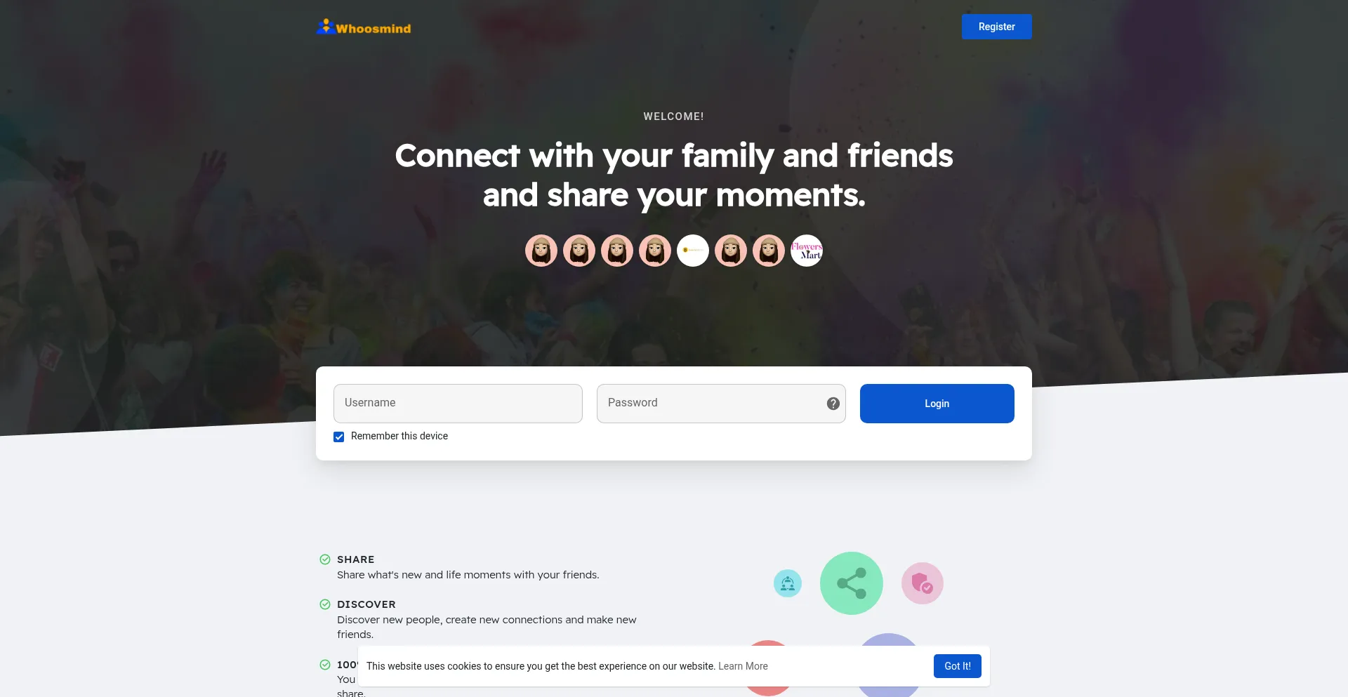 Whoosmind is a Social Networking Platform With a lot of features for user friendly use to posts, photos, videos and activities .