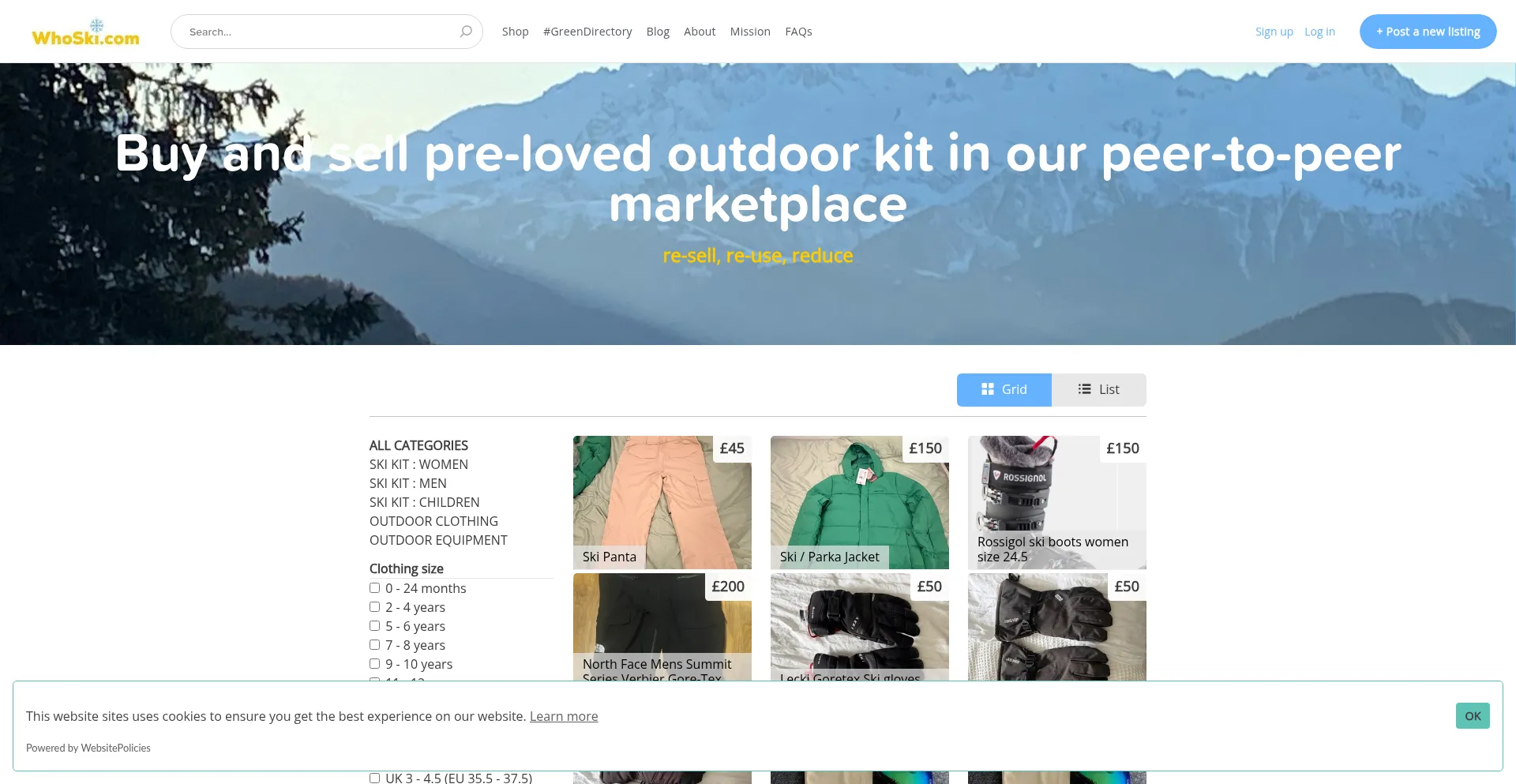 WhoSki.com - Buy and sell secondhand affordable outdoor and ski clothes, sustainable shop for ski and snowboard wear, outdoor activity clothing, supporting the circular economy. #SkiGreen