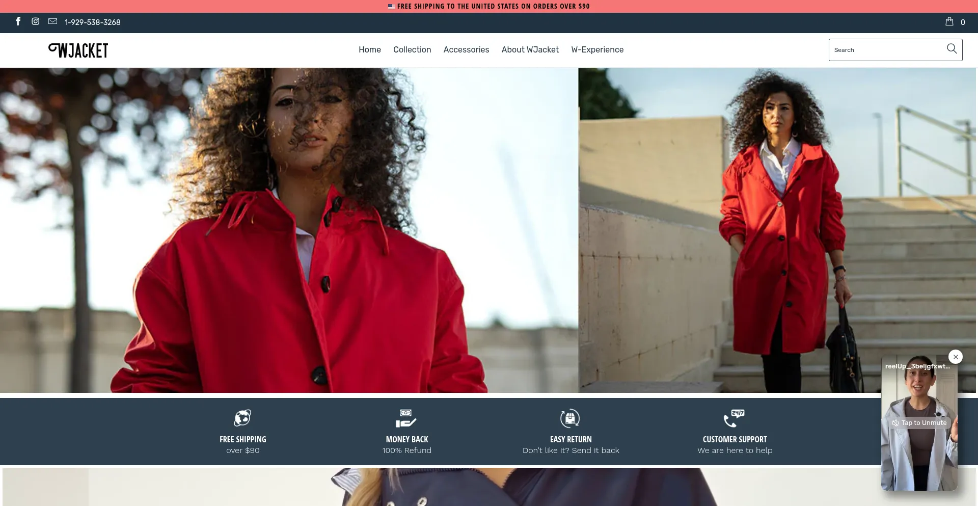 A presença de links de redes sociais no site indica que wjacket.com mantém contas oficiais em redes sociais, o que é um sinal positivo de credibilidade e engajamento.