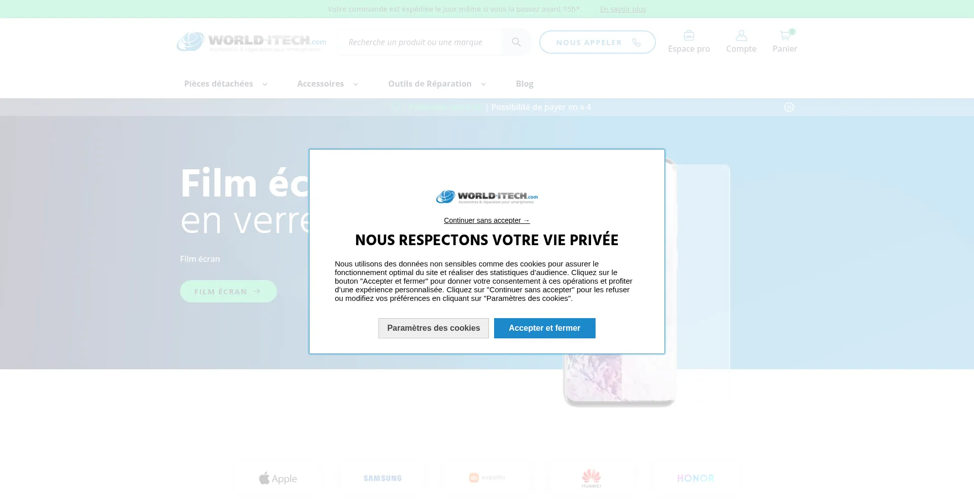 Accessoires et pièces détachées de qualité pour iPhone, Samsung, Huawei, Xiaomi : vitres tactiles, écrans LCD, batteries, outils de réparation, coques de protection