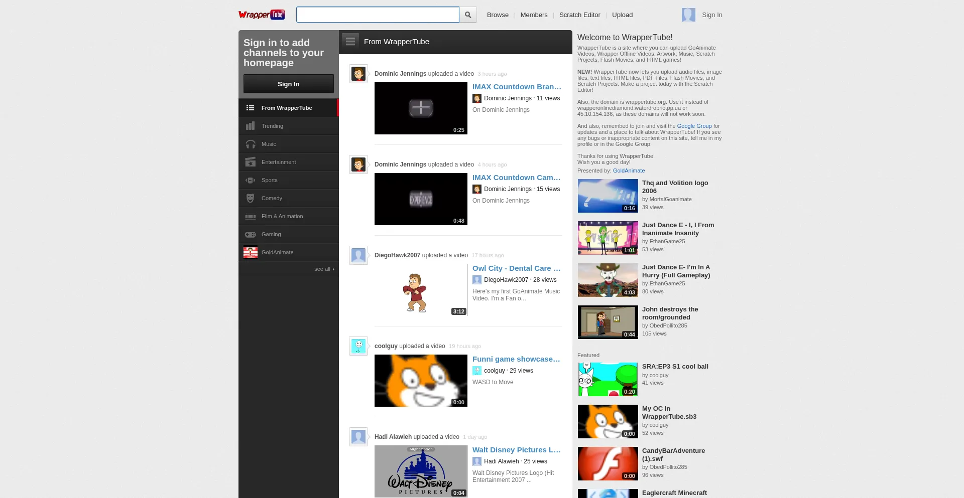 WrapperTube is a site where you can upload your Wrapper Offline videos, GoAnimate Videos, Scratch Projects, Artwork, music, and anything.
