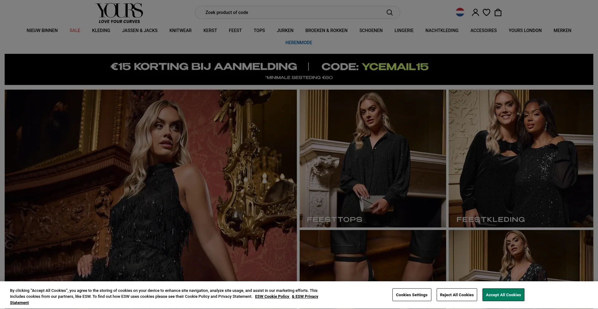 O site implementa mecanismos de consentimento de cookies em conformidade com regulamentações de privacidade como GDPR ou CCPA. Isso demonstra que yoursclothing.nl adere a padrões de proteção de dados e fornece aos usuários controle sobre práticas de coleta de dados pessoais.