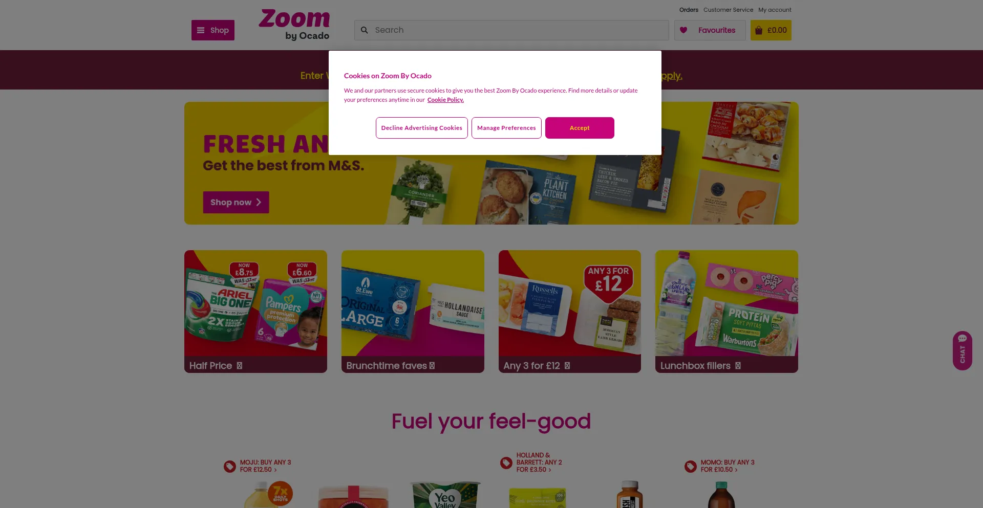 Try Zoom by Ocado today and choose from over 9,000 products including the best of M&S and Ocado, all delivered in under 60 minutes